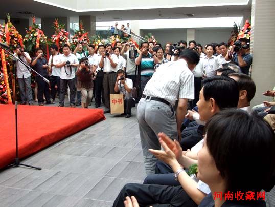 河南收藏网张祥龙向原河南省人民政府副省长贾连朝汇报了河南收藏网从2006年创办到现在,大力宣传河南的历史、文化、艺术、收藏等,并取得了一定成绩,贾省长很高兴,一起合影留念。