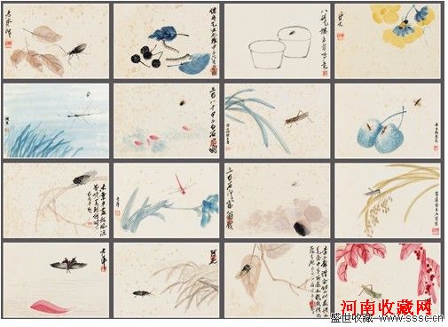 齐白石 草虫册页十六开 册页(十六开) 设色纸本