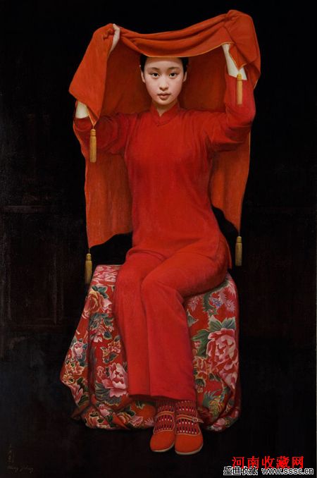 王沂东是当今中国最具实力的油画家质疑,他将西方古典油画的技法与中国民族文化的审美意蕴融于一体,成功地再现了自己独特的艺术风格。他的作品笔法精细严谨、造型线条分明、形体结构准确并擅长表现人物丰富复杂的内心世界,以古朴凝重而又俏丽灵动的艺术魅力扣人心弦。此次上拍的《新娘》秉承了王沂东油画的特色,色彩鲜艳,让人一眼难忘。