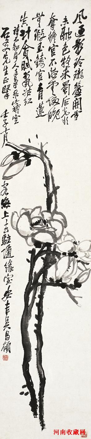 吴昌硕(1844~1927)木莲图 水墨纸本 立轴 1912年作 150×31.5cm