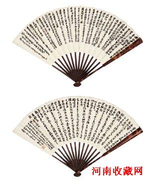 沈曾植小吴昌硕六岁,却在1922年先于吴昌硕五年去世。去年西泠拍卖为诸藏家展示了一幅沈曾植的绝笔对联,至今保持着沈曾植作品的最高价。《行书·诗作》同样作于沈曾植生命的最后一年,是吴昌硕、沈曾植与西泠印社创始人丁辅之三人之间友谊的见证。1904年夏,正是由丁辅之、叶为铭、吴隐、王福厂四人发起创立了西泠印社,并公推德高望重的吴昌硕为印社社长。在1922这一年春日,西泠印社的诸贤社友为八十岁的吴昌硕在杭州西湖置酒贺寿,在众人的瞩目中,由日本雕塑家朝仓文夫所塑的半身像被放置在印社中的缶龛里,而此像赞正是由沈曾植所书。同年夏日,丁辅之于西泠印社发行珂罗版《缶庐近作》,请为书籍题端者也同样是沈曾植。就在书籍发行的左右时日,丁辅之请吴昌硕录写了在西湖所作的八首诗句,洋洋洒洒数百字书于一面扇页上,毫不马虎。扇面本是书画润格中相对廉价的一种,但却是文人往来间最妙的媒介。老先生们常讲,也因为文人雅集的时候总要带上有自己上款或者自作书画的成扇,故文人赠予文人的扇作尤其希望展露出自己的才学,这里又何况是吴昌硕赠予丁辅之这样铭心的忘年之交。丁辅之请吴昌硕书毕,遂请沈曾植在背面“小字录旧作”。想必是为了与吴的小字行书相得益彰。一代文豪沈曾植同样以百字的篇幅经意书就,并谦虚地署款道,“昌老八十翁画如蚊脚,余厕其后,罕无莲楹之比乎?”想来沈寐叟不久以后便乘鹤而去,此作又得以保留旧有的一把极美的香妃扇骨,确实别样珍贵。