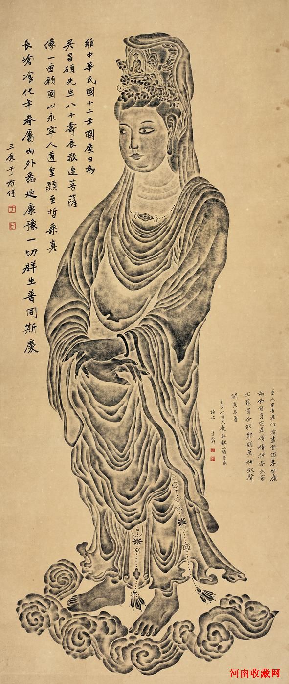 于右任(1879~1964) 题菩萨像拓片 水墨纸本 立轴 177×76cm