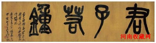 吴昌硕(1844~1927) 篆书匾 君子若钟 绫本 横披 1914年作 38.5×144.5cm
