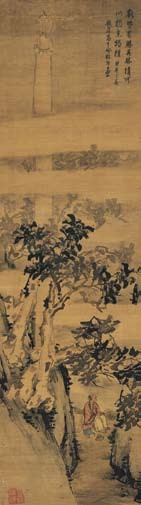 高其佩(1672~1734) 月下静观图 设色绢本 立轴 1714年作 183×51cm