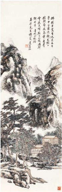 黄宾虹(1865~1955) 湖山幽居图 设色纸本 画心 90×44.5cm