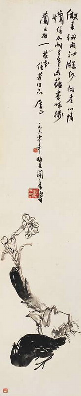 在近现代的众大师中,潘天寿的画作流通量显得最为稀少。据潘天寿的后代回忆,老先生对自己作画的要求十分高,毛笔落下三点所成的角度不符合他的理想,便要撕毁重画。这恐怕也是西泠拍卖对潘先生画作情有独钟的地方。在西泠首拍中,正是潘天寿的名作《春塘水暖图》揭开了西泠拍卖在国内拍卖界的序幕,同时也激励着我们不断以更高的标准要求自己,以诚为本,在前年的西泠拍卖中,《春塘水暖图》创造了更为优人的佳绩,并成就了当时南方艺术品市场的中国书画单件最高价。此次,我们又征集得潘先生的两件不同寻常的作品: