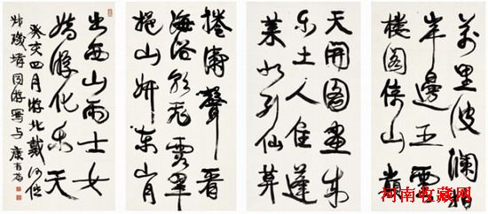 康有为(1858~1927) 草书 七言诗 纸本 画心 (四联屏) 1923年作 146×78cm×4