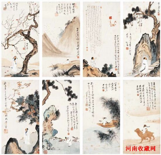 设色纸本 册页(八开) 1935年作 32. 5×16.5cm×8
