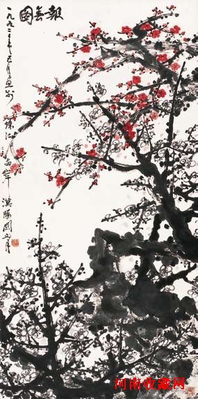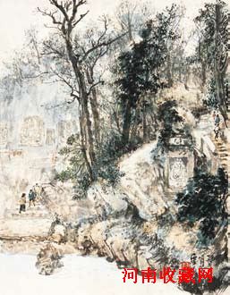 关山月(1912-2000),原名泽霈,广东阳江人。早年,绘画才能被高剑父所赏识,于1935年入“春睡画院”习画。高剑父以“山月”为泽霈起名,颇有“高山仰止,月朗中天”之意,寄托之深由此可见一斑。关山月始终将写生作为其国画创作的重要手段,以革新作为创作的生命力,画材酌挹于民间生活,终身践行艺术为社会和人民服务的崇高理想,故有“时代颂歌笔行先,画图风格人品决”的艺术信念,主张博采古今中外优秀艺术之所长,笔墨当随时代而发展变化。长期的旅行写生,饱览各地名山胜景,使他的山水画得雄奇幽美之胜,正如其画语所云:“人间何处有此境,笔底随心化大千”。从四十年代的写意巨作《漓江百里图卷》中的苍凉萧索,到五十年代的山水巨制《江山如此多娇》的开阔雄壮,再到七十年代《绿色长城》中对东西方艺术的完美融合,真正完成了艺术上的蜕变,开创了一个时代的新风。同时,关山月在人物画、花鸟画、风俗画诸领域均有突出的成就,尤擅写梅,以“梅花香自苦寒来”自喻,所作“关梅”,饮誉海内外。“关梅写傲骨,飞雪铸雄魂”,与黎雄才一样,关山月成为近百年来少数几个具有广泛影响、富于重大学术研究价值的著名国画家之一。