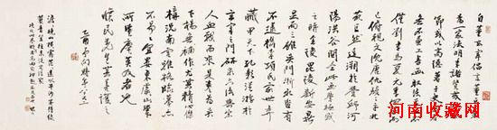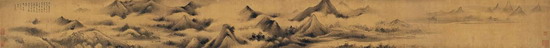 水墨绢本 手卷 1646年作 画心:22.5×265cm 跋文:29×110cm