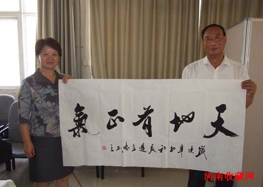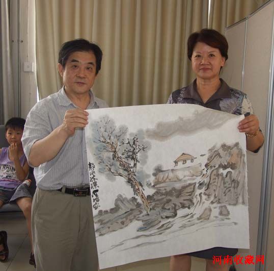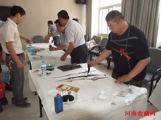 郑州市美协主席罗治安(左)现场激情创作的作品