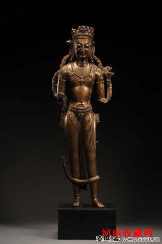 在这件文殊菩萨造像作品上,这些典型特征都十分醒目:略为缺憾的是,头部三角形的三叶冠部分受损,双手断裂、花环局部受损。不过,正是这些有意或无意的造化,使这件作品锦上添花,竟无意成就了这一流派作品中的绝世之作。近千年时光虽转瞬即逝,造像的神奇魅力却依然焕发。此件体现宗教艺术精神与历史成就的经典造像将上拍翰海秋拍。
