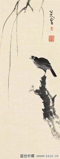 在中国画史上称“四僧”,是指明末清初四个出家为僧的画家。原济(石涛)、朱耷(八大山人)、髡残(石溪)和渐江(弘仁)。四人都擅长山水画,各有风格。去年秋拍时八大山人一张《孤禽图》拍出了6272万元的天价,本场上拍的八大山人《孤禽图》同样精彩,著录于人民美术出版社《八大山人书画编年图目》(中),P90。整幅画画一鸟水禽独立于树头,形象洗练,造型夸张,表情奇特,构图奇妙,笔法雄健泼辣,笔势朴茂雄伟,墨色淋漓酣畅,相信这幅来源有序的《孤禽图》势必引发拍卖现场的争夺战。