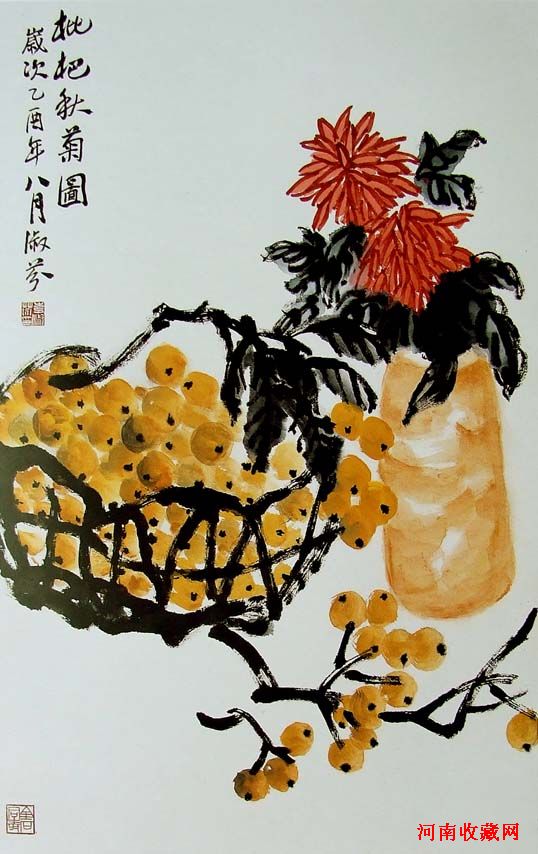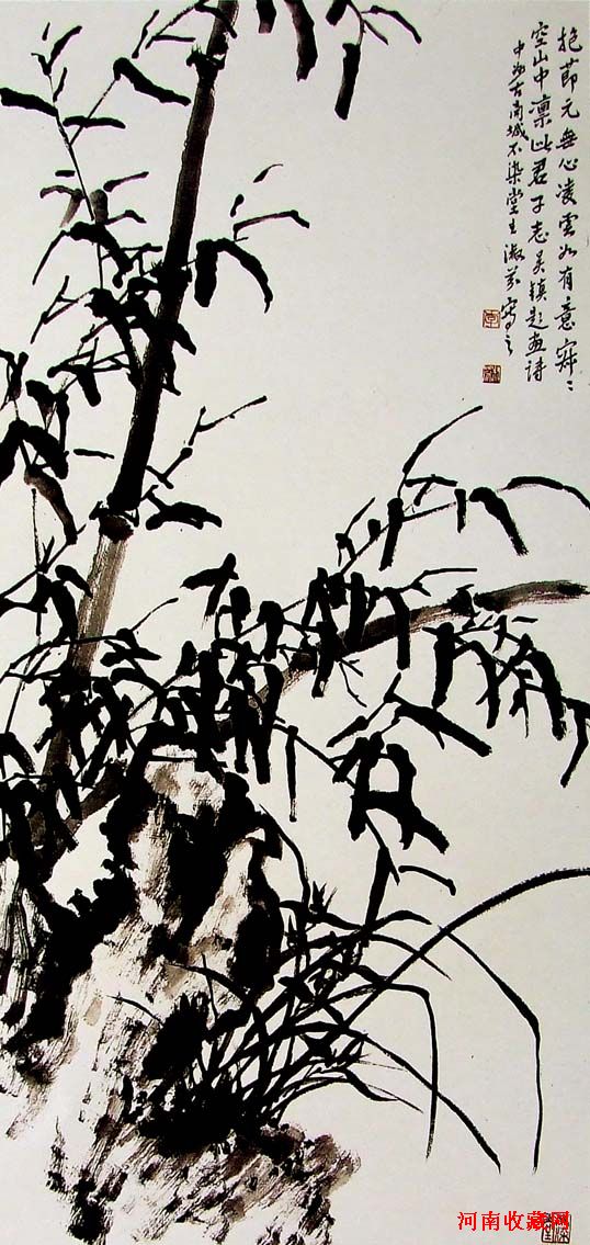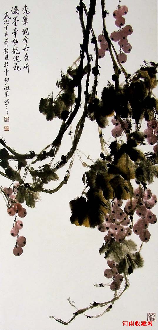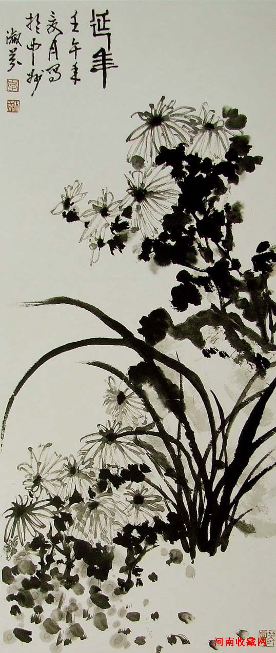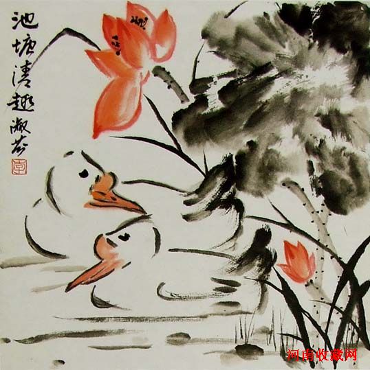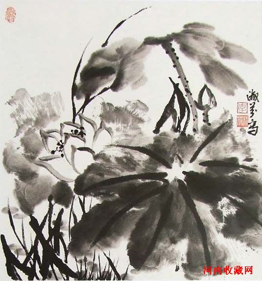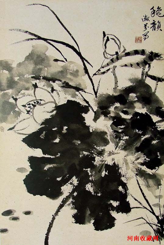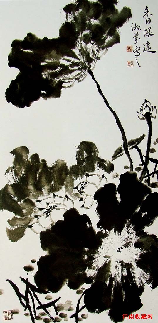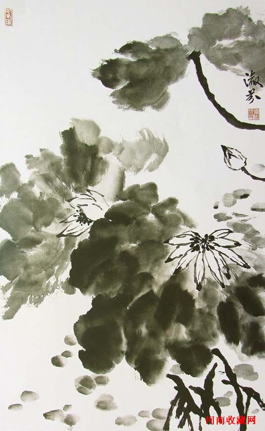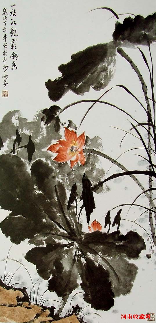 按:昨日去健强友画室,多日不见,很是高兴。话题自然是书法与国画的关系。觉健强黑了、瘦了,但说起话来,掷地有声、气宏如牛。偶见东墙挂一墨彩莲花国画,很是纳闷。健强解释道:这是老母所作。我更是纳闷了.....