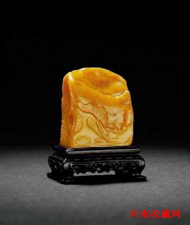 林清卿雕田黄石荷塘宿鹭薄意章