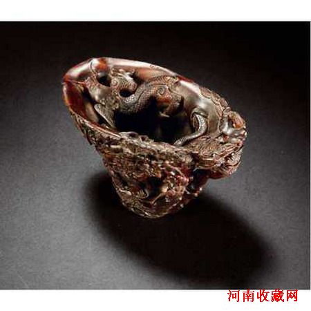 明末清初·尤侃款山水祥瑞犀角杯