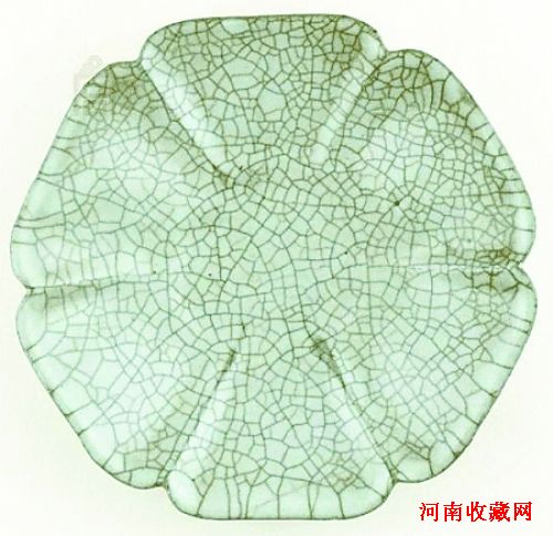 图为损坏前的宋代哥窑青釉葵瓣口盘