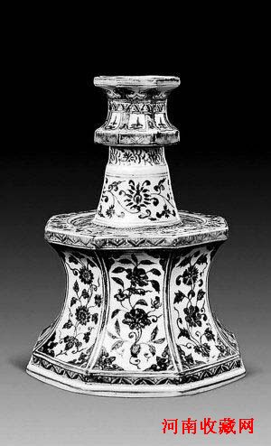 中国嘉德今年春季拍卖会上推出的一件明宣德青花折枝花卉八方烛台。(嘉德供图)