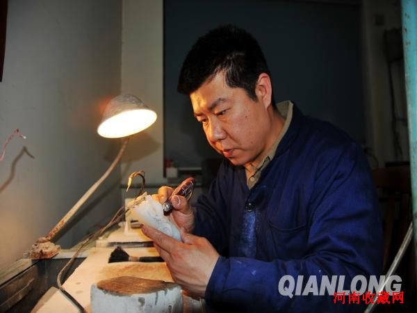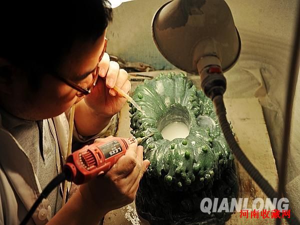 玉雕大师正在雕刻作品中的白玉佛像