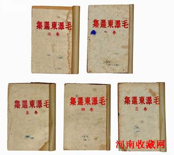 5月28日,北京中国书店春季书刊资料拍卖会上,自1944年5月至1976年三十余年期间,不同地区出版的不同版本的《毛泽东选集》受到买家的追捧。1944年我国第一部系统编选的《毛泽东选集》蓝色布面精装本(疑卷首缺一页)以20 .16万元成交,1944年《毛泽东选集》5册平装本以16 .8万元落槌。另一种是原周总理办公室主任、文化部副部长齐燕铭同志生前学习使用的《毛泽东选集》(1964年4月北京第一版)也同场拍卖,以4700元花落花开。此外,1948年东北书店版《毛泽东选集》(1—6卷)以1 .12万元、《毛泽东选集》(1961、1965、1966年出版等三种 5函22册)以8960元、1947年中国共产党晋察冀中央局版(六册)以4. 48万元、《毛主席近影集》(1946年晋察冀军区政治部出版)以2 .02万元、《毛泽东最近的抗战主张》(1938年1月出版)以2 .02万元成交。