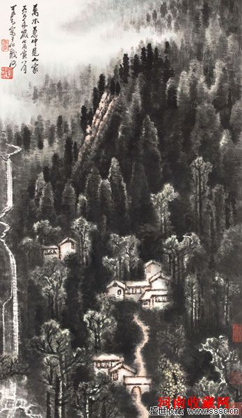 李可染《万木葱中见人家》