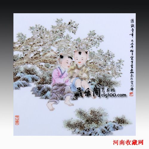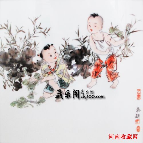 97年至今,除了典雅含蓄的仕女画外,李磊颖的瓷画作品中数量最多,质量最高的当属各类童子形象,这些形象既有作者自己对幸福童年的追忆,也有初为人母后的温馨情怀的体验,它是一个女性艺术家处于人生重要阶段时种种细腻情绪的外化和再现。
