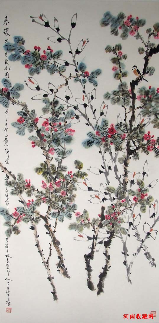 早年曾习工笔,50年代又师承八大山人、任伯年、吴昌硕、陈半丁、齐白石等大家,画风为之一新。先生的花鸟画以牡丹著称,素有“唐牡丹”之誉。