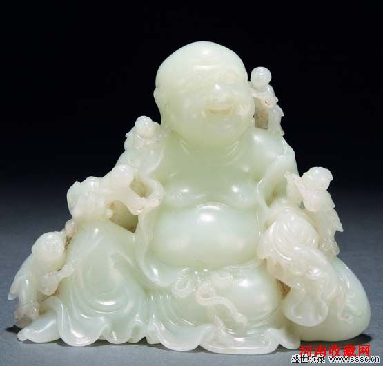 清 乾隆白玉雕五子戏佛 H: 9.5cm