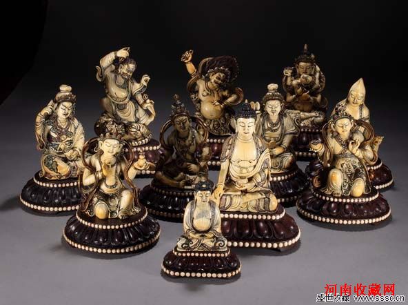 民国 象牙雕加彩佛造像一组 11尊