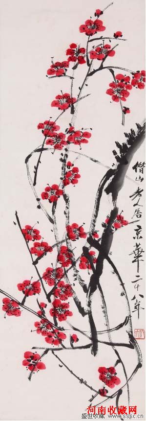 齐白石 红梅 纸本立轴 100×33cm