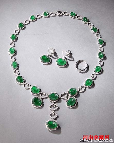 18K金镶钻满色如意套装(三件)