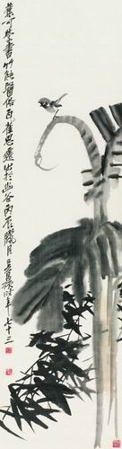 吴昌硕(1844-1927)芭蕉小鸟图 轴