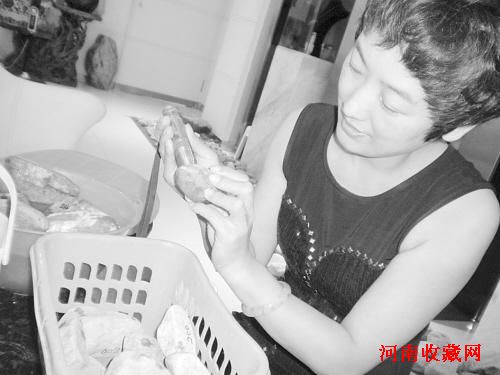 现在朋友、亲属生日或喜庆日子到来时,陶乃强都会用翡翠原石作礼物,让亲朋感受石头切割后的惊喜。“没准哪一块就含着精品翡翠,给亲人朋友带来巨大经济效益”。现在他送给朋友们的十几块原石价值都已翻了几番,大家很感谢陶乃强。