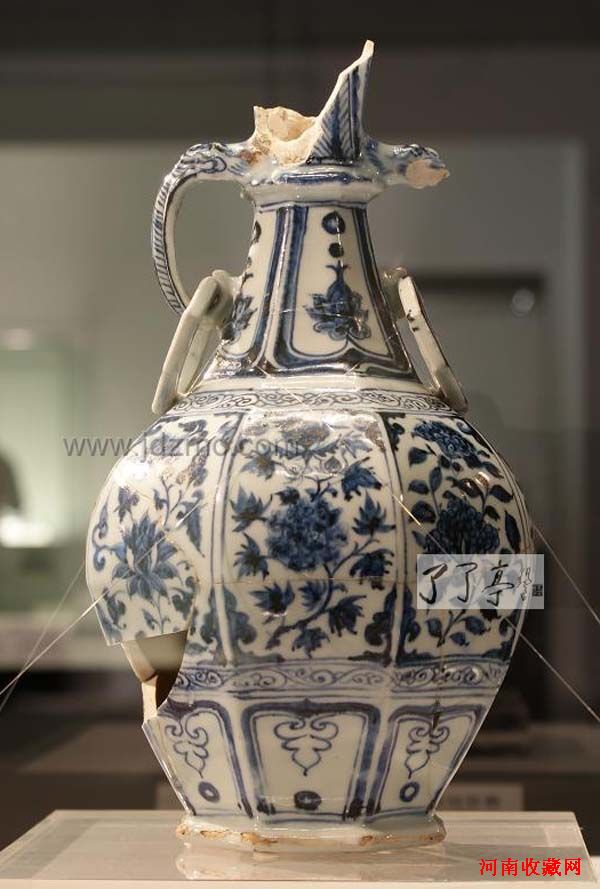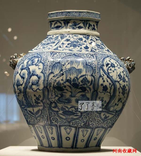 了了亭 景德镇陶瓷艺术馆 资讯 本文刊发于《陶瓷研究》:在忽必烈统治时期,虽然没有明确规定当时蒙古人、色目人、汉人、南人四种等级差别,但是实际上是存在着差别。因此,元青花的审美趋向不会因为繁荣的汉族文化而按照汉族文化的审美趋向发展。但我们可以从汉文化的繁荣,元代制瓷采取“官搭民烧”的制作体制来看。对元青花的创作和烧制主要还是“民意”。使元青花陶瓷装饰模式,在模仿着汉族文化的制作环境中,按照蒙古文化、伊斯兰文化的意象快速发展起来。在这样环境影响下,创作者对元青花的装饰模式和视觉语言的表达,不可避免的结合了许多汉族传统文化因素。从主题纹饰上看,元青花的主题纹饰大多是中国的传统纹饰,如牡丹、瓜果、鱼、葡萄、龙风、麒麟、松竹梅等。其中松竹梅纹的画法受到元代绘画的影响。从辅助纹饰上看,卷草纹、波浪纹、回纹、蕉叶纹等,大多出现在中国传统器物的装饰中。