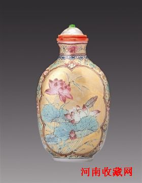 清乾隆料胎画珐琅开光莲花鼻烟壶
