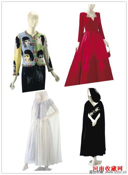 伊丽莎白•泰勒花费五十载精心收藏了一批博物馆级的珍品,其中包括香奈儿(Chanel)、迪奥(Christian Dior)、詹弗兰科(GianfrancoFerré)、纪梵希(Givenchy)、候斯顿(Halston)、提赞尼(Tiziani)、华伦天奴(Valentino)、范思哲(Versace)及圣洛朗(Yves Saint Laurent)等名家杰作。数十年来身为好莱坞顶级女星的伊丽莎白•泰勒经常与设计师直接合作,创造出让人惊艳的造型,并透过镜头成为不朽传奇 ── 不论是1967年出席《驯悍记》(TheTaming of the Shrew)伦敦皇室放映时所穿着的飘逸银色香奈儿舞会礼服和斗篷,还是1992年出席第64届奥斯卡金像奖典礼时的米色华伦天奴丝质订制迷人礼服。此系列的时尚珍品接近400件,当中包括可遇不可求、独一无二的高级订制服、成衣、外衣、斗篷,以及多不胜数的手袋、订制珠宝及鞋履。