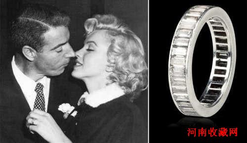 这枚钻戒是1954年1月14日迪马乔在婚礼上送给梦露的,戒指用白金打造,上面镶有35颗钻石。目前这枚钻戒上的一颗钻石已经丢失,钻戒估价在30-50万美元(约合192-320万元人民币)之间。