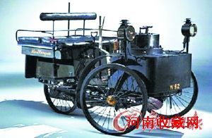 美国一家拍卖行10日以460万美元高价卖出一辆127年“高龄”的蒸汽动力老爷车(如图)。这辆老爷车由德迪翁·布东公司1884年生产,仍能正常行驶,最高时速61公里。康特·德迪翁是这辆车的设计者,也是第一任主人,他把这辆车称作“侯爵夫人”,以纪念他母亲。 1995年,“侯爵夫人”获汽车专家戴维-伯吉斯—怀斯认证,成为全球最古老且可行驶的汽车。 不过,一些媒体认为,一辆生产于1875年的老爷车才是全球最古老汽车。这辆车现存于英国国家汽车博物馆,有3个轮子,开动时需工作人员跑步跟随以照管车内的锅炉。
