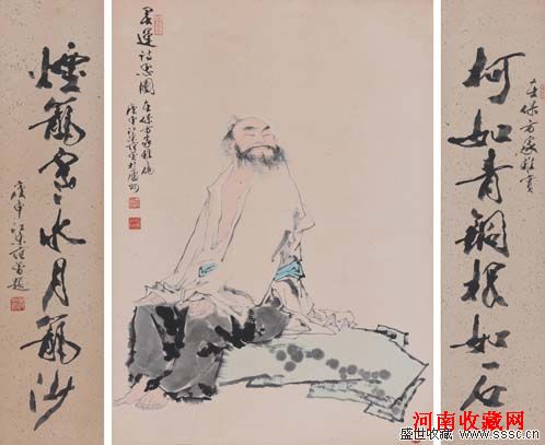 范曾 灵运诗思图、行书七言联 立轴 设色纸本