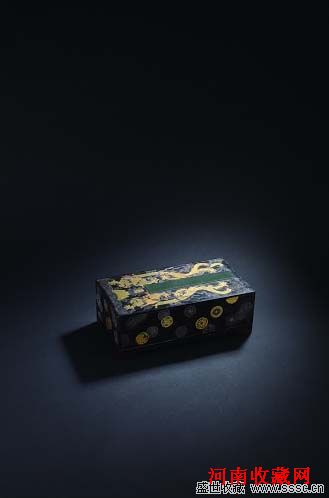 清乾隆紫檀嵌金银碧玉双龙纹册页盒 L 24cm