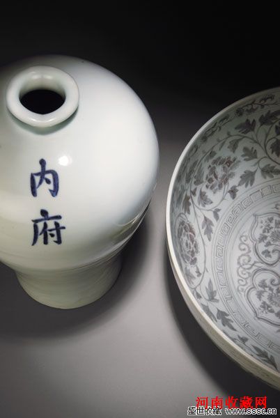明代永乐时期的白釉最为名贵,系现今所知唯一未入博物馆收藏之明代早期青花内府梅瓶。此种永乐青花内府梅瓶极为罕见,目前全世界仅存五件,另外四件分别为北京市文物研究所、台北故宫和日本大阪市立东洋陶瓷美术馆所宝藏,未见有收藏家收藏同类品之记录,是为珍罕!