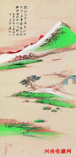 “味辛轩”主人为一代收藏大家,在中国明清官窑收藏领域,蜚声中西。在解放初期,也曾在香港为重要文物回归祖国立下了汗马功劳。本次秋拍上拍张大千、黄君璧、章士钊等近现代名家法书绘画精品十余件,全部得自作者本人之馈赠。其中张大千1935年作青绿山水《秋江闲钓》,瑰丽堂皇亦不失清幽之意境,确是大千经意之作。