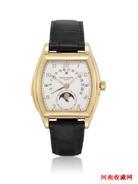 百达翡丽5013型号(拍品编号4067,估价:港币2,400,000-4,000,000/美元300,000-500,000)是百达翡丽超级复杂系列的一份子,5013型号于1992年首次面世,是品牌首枚搭载自动机芯,并结合万年历及逆跳日期显示的三问表。腕表推出的时候,更是百达翡丽历来最复杂的腕表。2010年腕表正式停产,过去市场上只曾出现五枚黄金款式,此拍品就是其中之一。