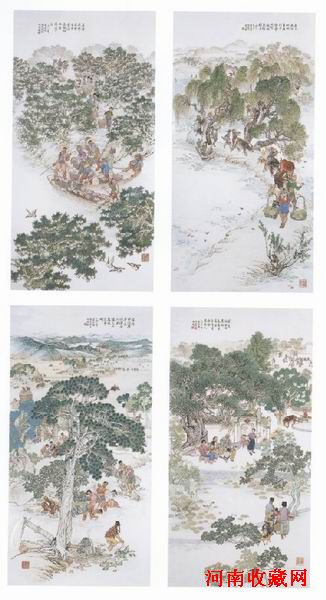 张松茂 王锡良 粉彩农村新貌组画瓷板 1962年