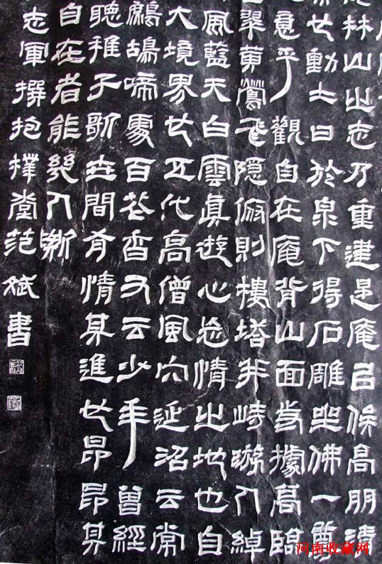 按:前几天,得知书画家范斌应邀书写《重建自在庵记》,且打有拓片,甚为欢喜。现将原作和拓片一同展示,与诸友共赏....