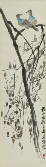 齐白石 玉兰斑鸠 设色纸本 立轴 178×47cm