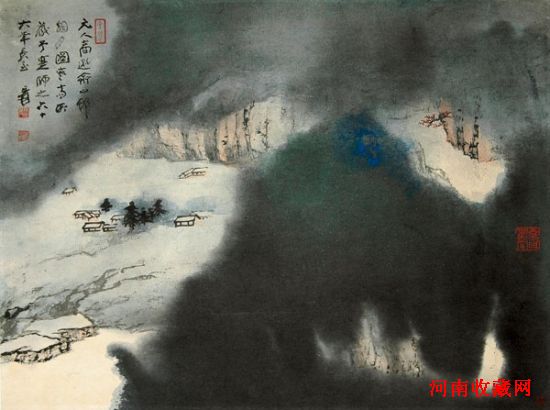张大千《山邨烟月图》
