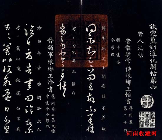 此时,必须提到另一人,袁世凯的次子袁克文(1889~1931),字豹岑,别署寒云。他是袁世凯的三姨太金氏(朝鲜人)所生,素有“民国时期天津青帮帮主”之名,与张学良、张伯驹、溥侗并称为“民国四公子”。袁克文长于诗文,工书法,精金石,爱好藏书和古玩,精于鉴赏,曾与傅增湘、徐森玉、周叔弢等多有往来,与之研究版本、文物。袁克文生性豪放,他收购文物挥金如土,但兴尽后就转让。《淳化阁帖》乾隆拓本在此时被居于天津的袁克文所藏。