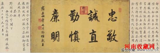 题识:忠敬诚直,勤慎廉明。雍正四年七月赐怡亲王。