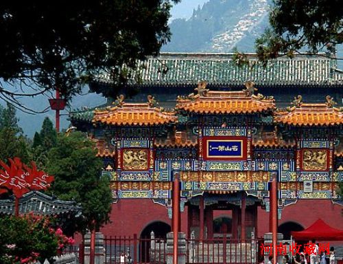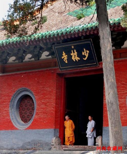 两位少林寺僧人在山门前迎客(2011年6月29日摄)。位于中岳嵩山脚下的少林寺,是“禅宗祖庭”和少林武术的发源地。